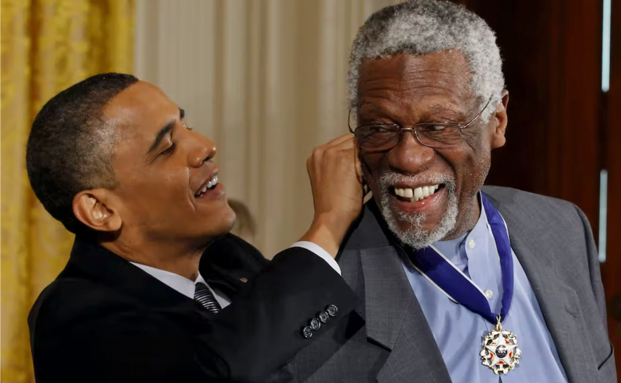 President Barack Obama presents NBA champion and human rights advocate Bill Russell the Medal of Freedom on Feb. 15, 2011. Chip Somodevilla/Getty Images