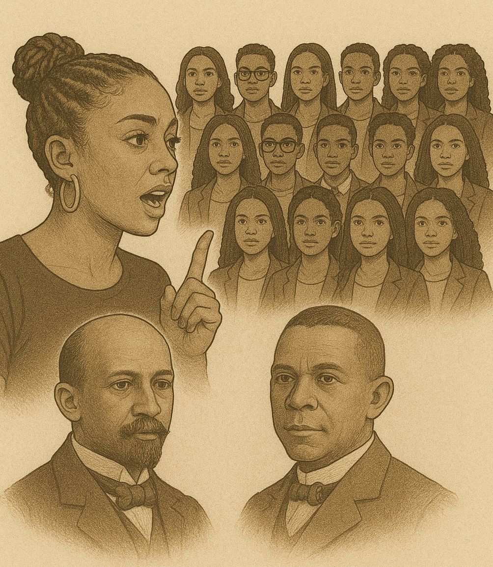 When comedian and cultural critic Amanda Seales walked into a room with 20 Black conservatives in the viral video “1 Black Radical vs. 20 Black Conservatives,” the sparks that flew weren’t just about today’s politics. They echoed one of the oldest and most consequential debates in Black American history: the clash between Booker T. Washington and W.E.B. Du Bois.