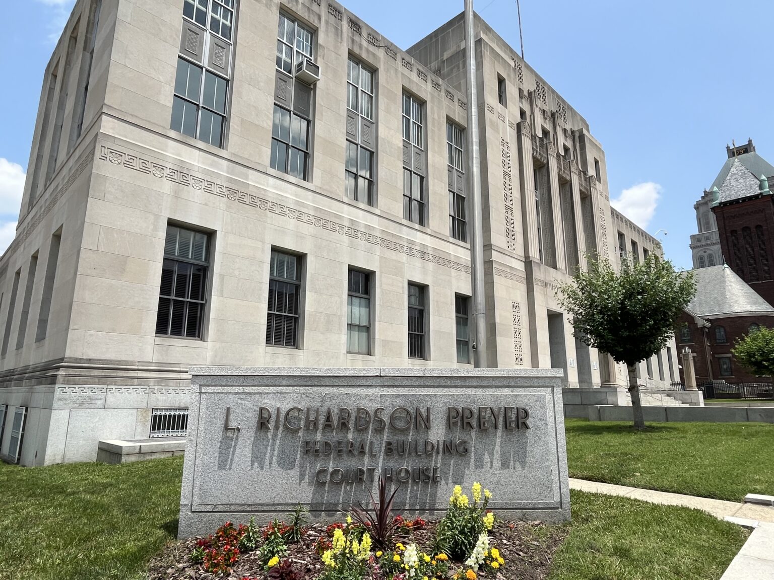 The L. Richardson Preyer Federal Courthouse in Greensboro where on Thursday a federal judge heard arguments in the appeal of the state Board of Elections decisions to reject voting locations at NC A&T State University, UNC-Greensboro, and Western Carolina University. (Photo by Lynn Bonner/NC Newsline)