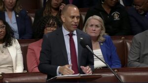 During Jeffries’ speech, Democrat Congressman Kwesi Mfume of Maryland told this reporter, “Johnson and Trump think they have the votes.” Jeffries notes that Democrats only need four Republicans to stand with them to defeat the legislation.