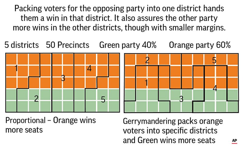 That equates to an 8 percent efficiency gap favoring Republicans — or an additional 13 GOP seats beyond what would be expected from the total votes, according to an AP analysis.