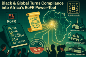 Black & Global (B&G) began as Melissa Muhammad’s one-woman tax‐law practice that helped U.S. exporters navigate foreign-trade zones. Two decades later the Maryland-based firm has evolved into a 70-person compliance think-tank serving governments, development banks, and Fortune 500 suppliers on four continents. Its core asset isn’t capital or lobbying muscle—it’s fluency in paperwork: customs codes, INCOTERMS, ESG audits, and transfer-pricing disclosures that stump most entrepreneurs. Now imagine B&G announcing that every billable hour, training module, and white-paper briefing will be centered on a single new goal: universal Right of First Refusal (RoFR) statutes that guarantee diaspora- or African-owned firms the first chance to match or beat foreign bids on public contracts.