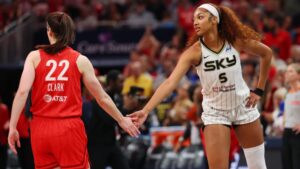 The context of the remarks wasn’t entirely clear. They took place as two of the sport’s biggest rivals, the Fever’s Caitlin Clark and the Sky’s Angel Reese, faced off on the court.